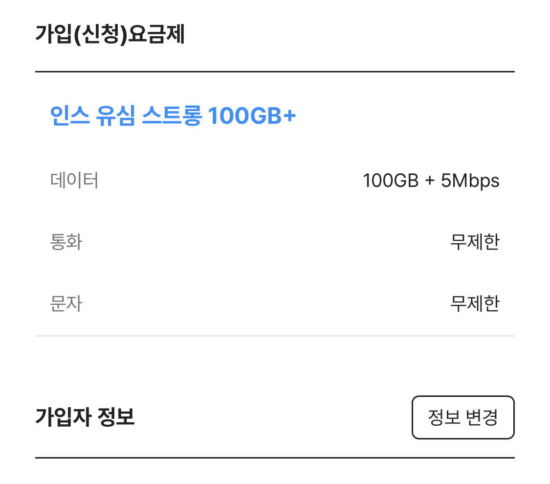 인스 유심 스트롱 100GB+