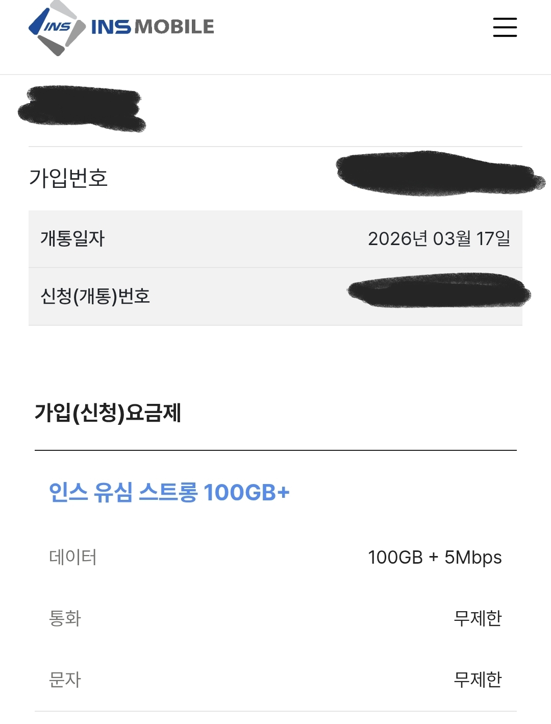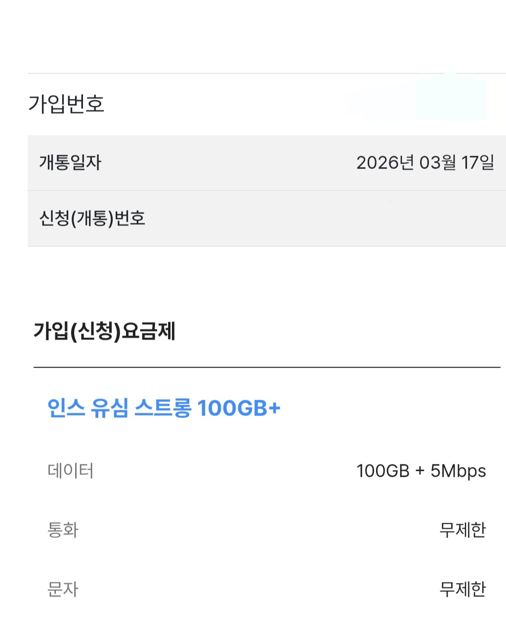 다른 알뜰폰 회사 보다 홈페이지가 잘 되어 있고 개통 신청도 바로 되는 거 같습니다. 불편한 로그인 절차가 필요 없이 접수 번호 만으로도 개통 신청 및 로그인도 가능 해서 너무 편했습니다. 개통 신청 후 3분 만에 개통이 완료 되었고 실제 유심까지 인식이 되는데, 10분 도 안 걸렸습니다. 셀프 유심 으로 개통 하는 것도 아마 매우 쉬울 것 같습니다. 1번 강추 하고 2번 강추 하고 세 번도 강추합니다 금액도 저렴해서 다음에 또 이벤트 하면 인스 모바일을 이용할 것 같습니다.