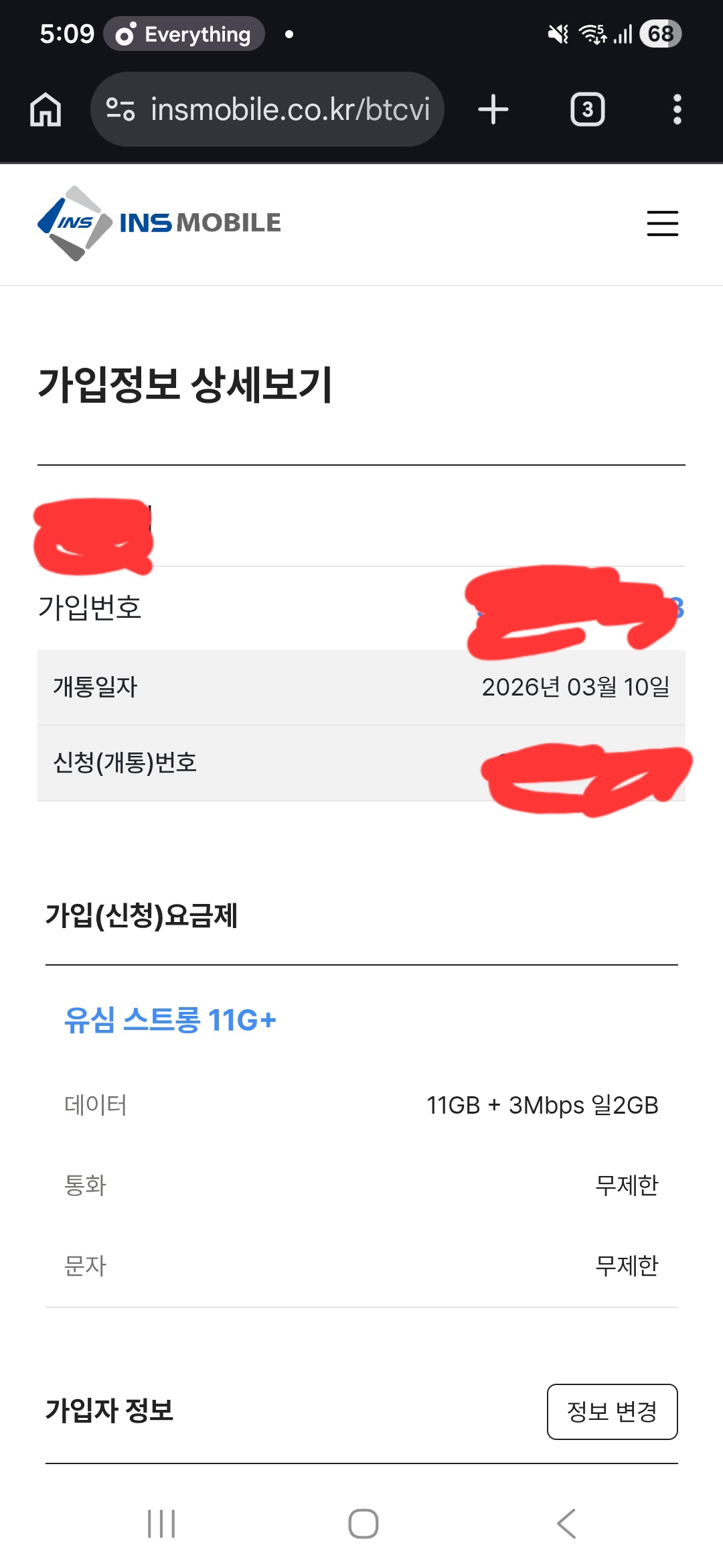 전원한번 껏다키니 바로개통이네요~ 이렇게편할수가 ㅎㅎ 요금제도 넘 저렴해서 감동입니다ㅠ