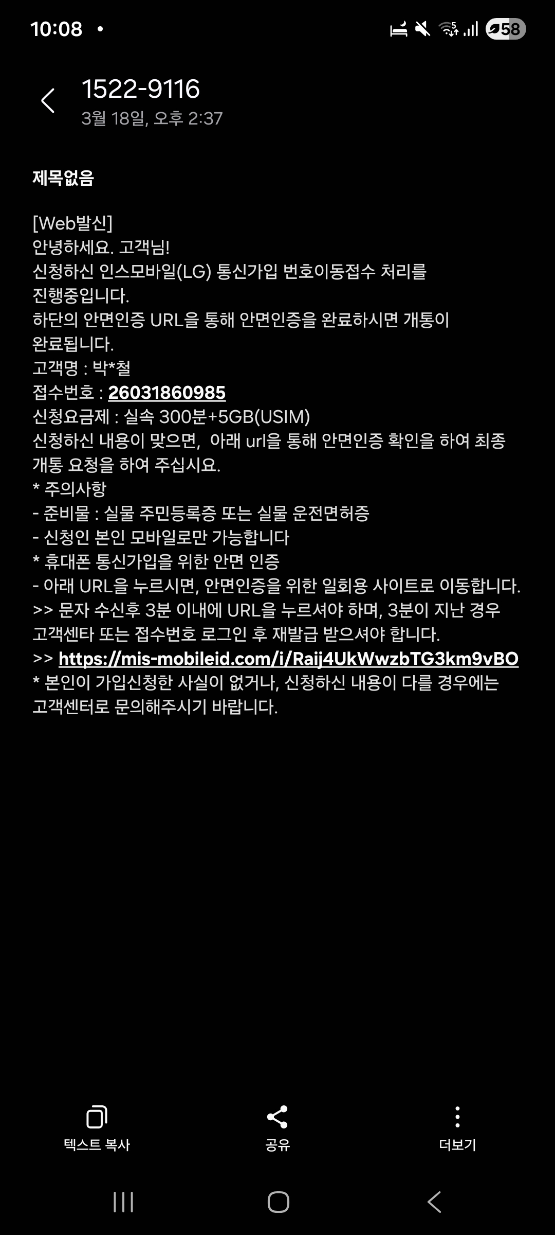 신규 유심 개통 하였는데