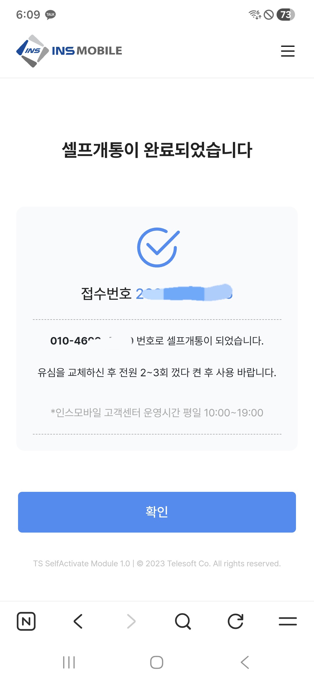 셀프개통 굿~