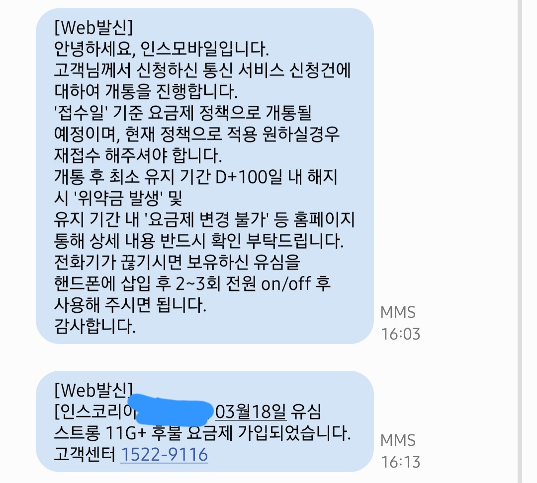 주말에 신청하고 설명서까지 첨부 되있어 빠르게 개통 신청 했어요 당연히 통화 품질 좋아요 역시 인스모바일 이네요 잘 사용할께요 감사합니다