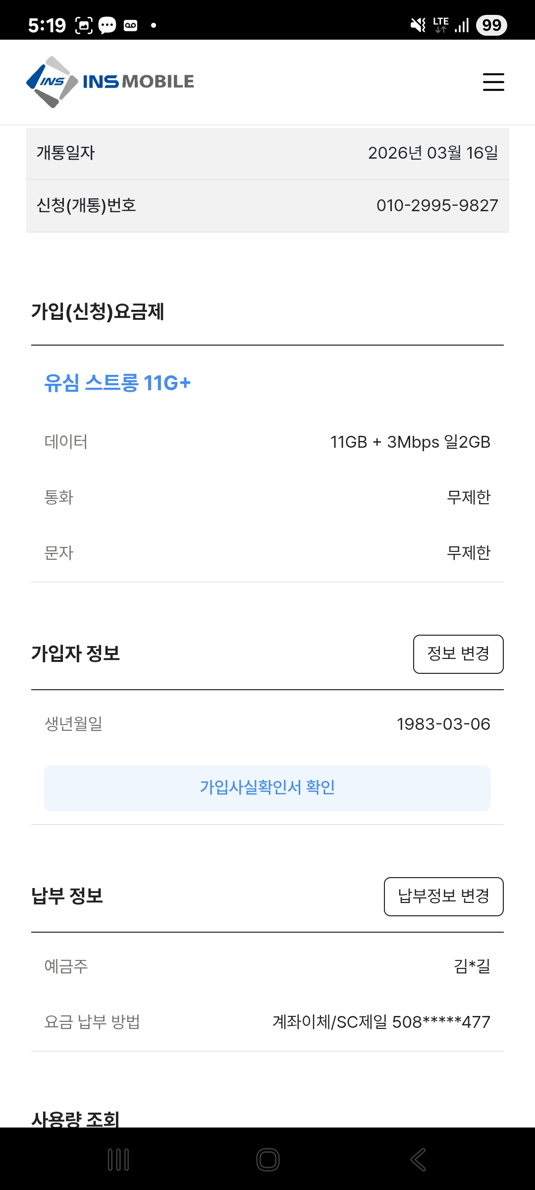 알뜰폰 개통후기