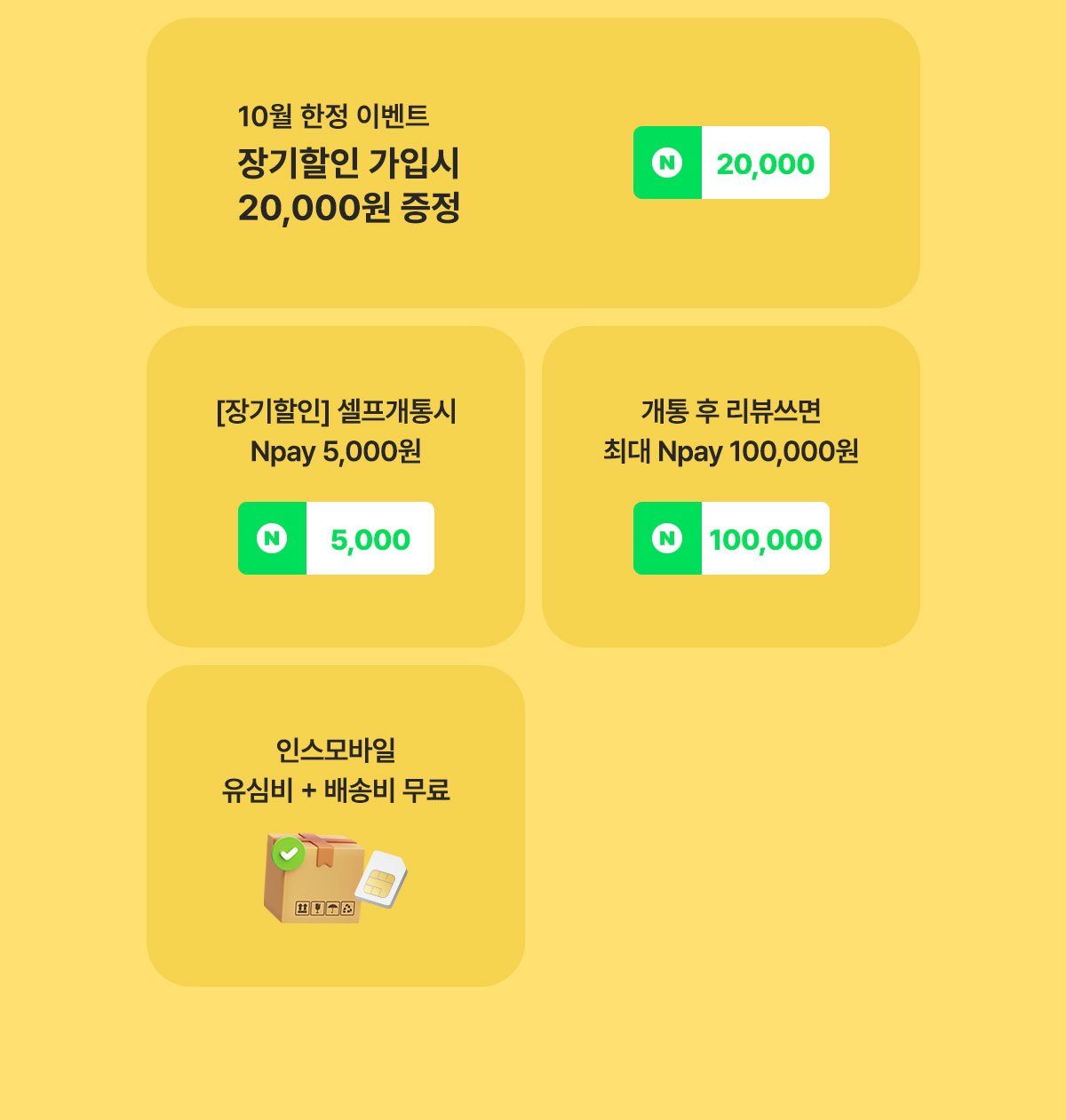 네이버페이 지급 이벤트는 인스모바일 홈페이지를 통해 접수 및 개통 완료된 대상자에 한하여 지급됩니다.
