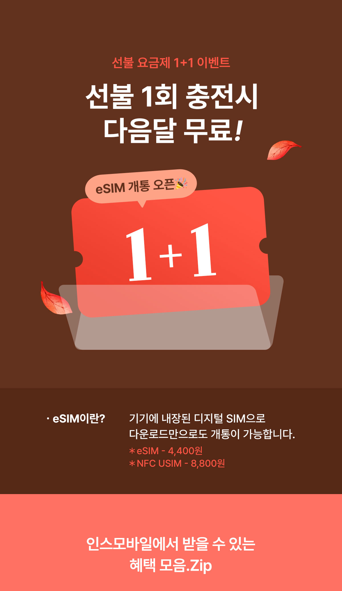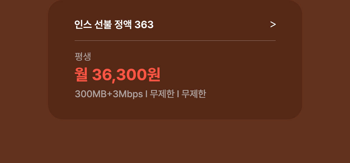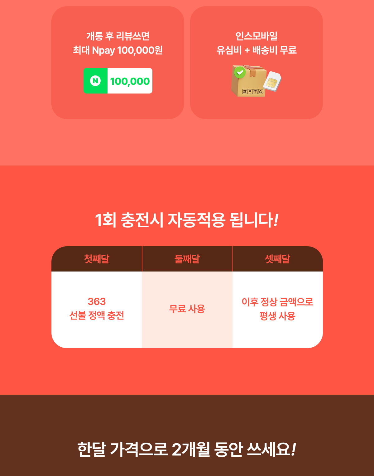 인스 선불 정액 363 개통 후 충전시 1개월 무료 충전이 제공됩니다.