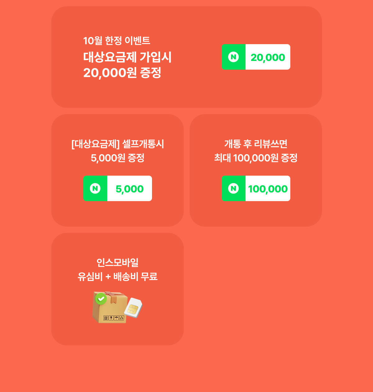 네이버페이 지급 이벤트는 인스모바일 홈페이지를 통해 접수 및 개통 완료된 대상자에 한하여 지급됩니다.