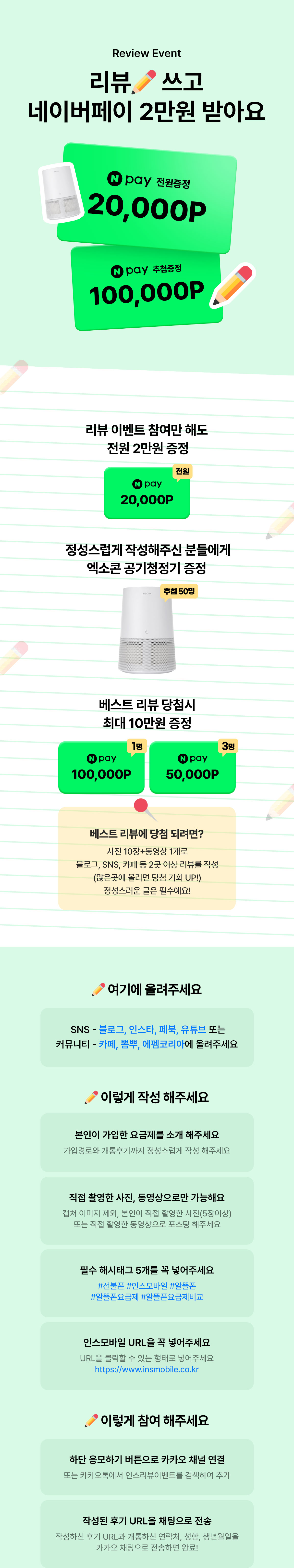 작성해주신 모든 리뷰는(사진, 글, 동영상 전부 포함) 인스모바일 마케팅에 활용될 수 있습니다.