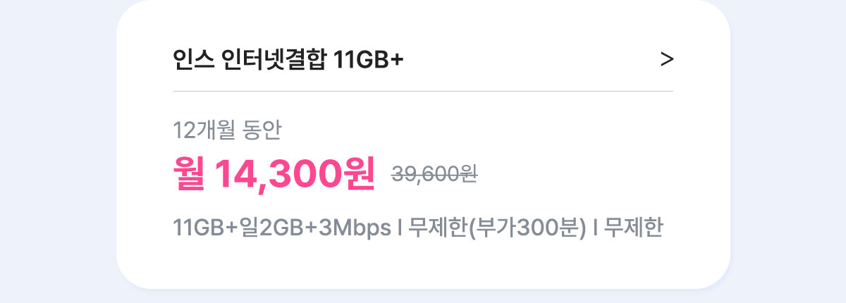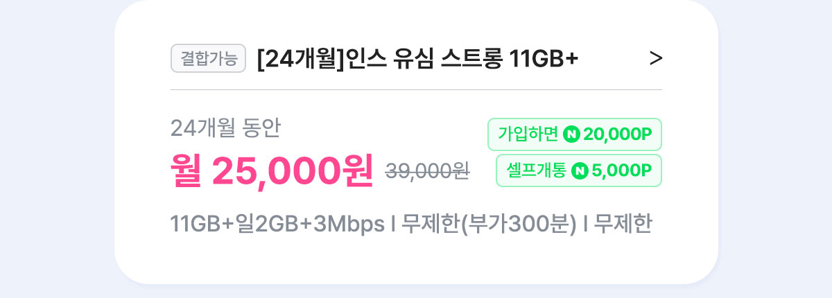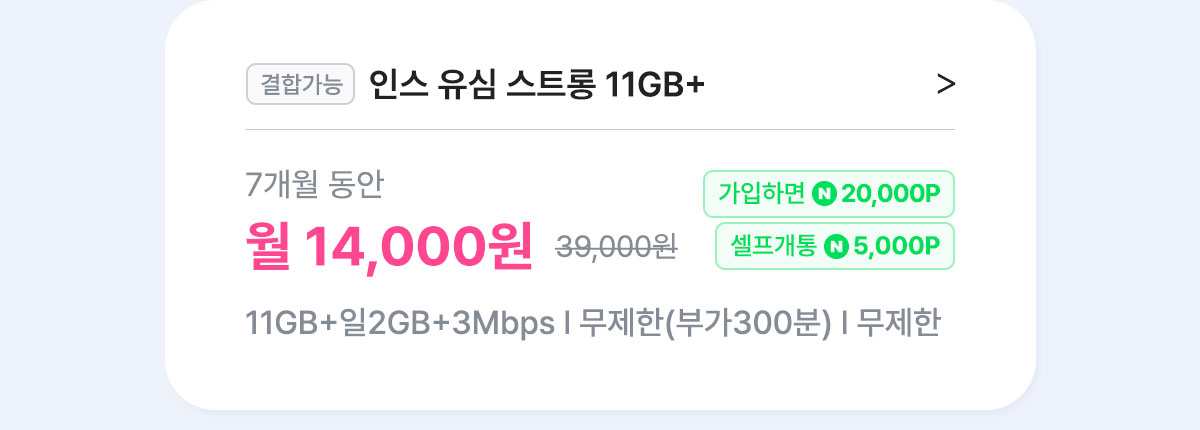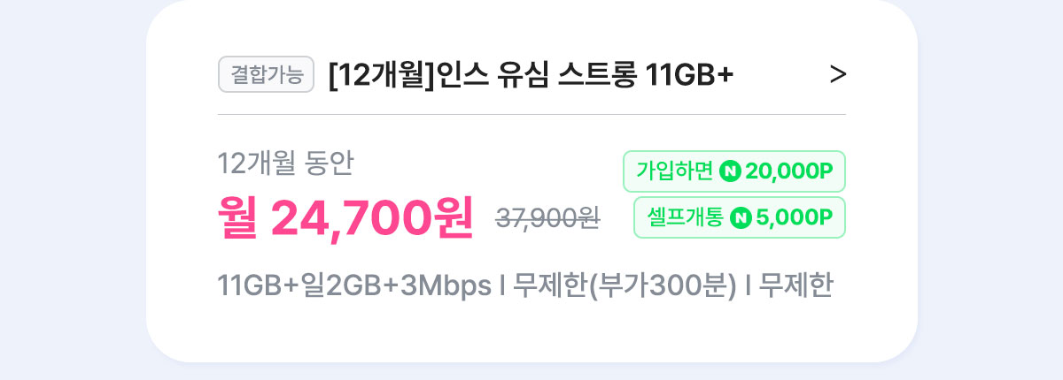 [7개월/12개월/24개월] 인스 유심 스트롱 11GB+