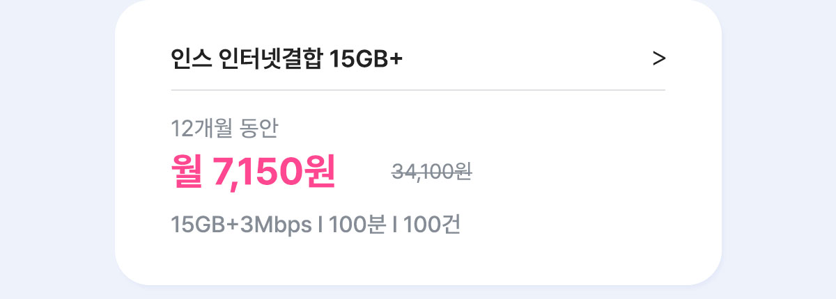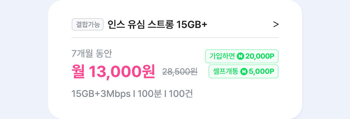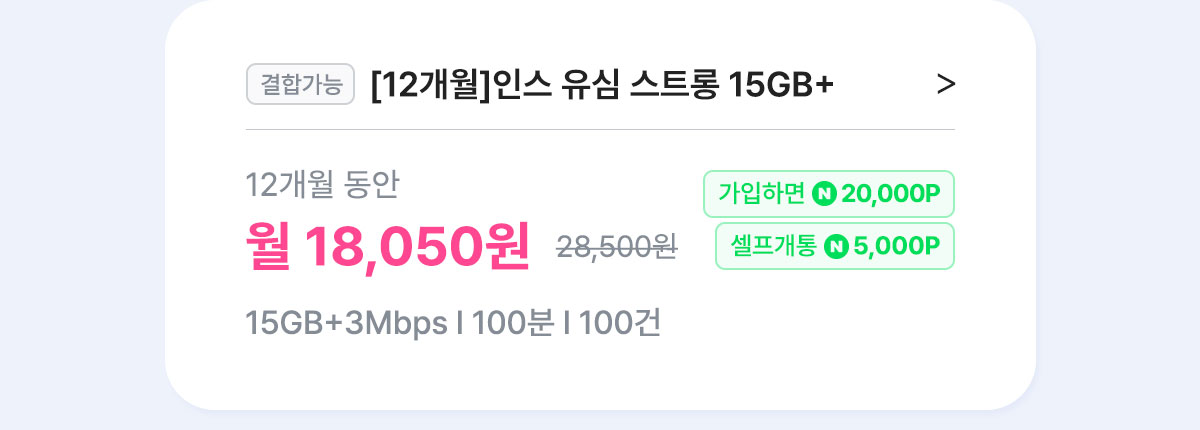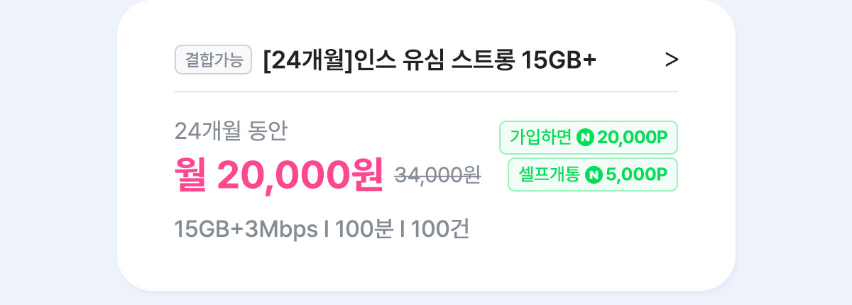[7개월/12개월/24개월] 인스 유심 스트롱 15GB+