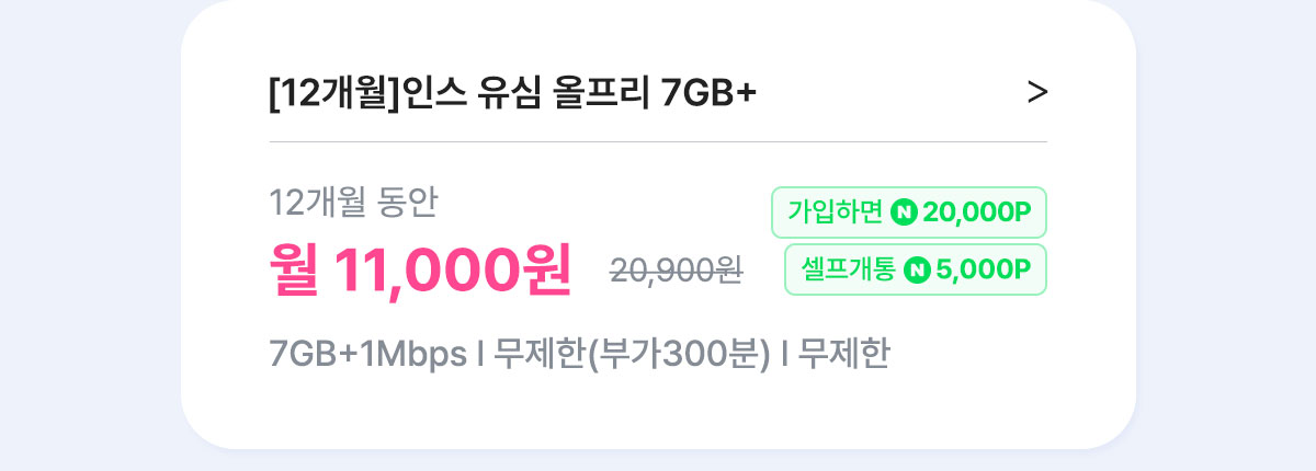 - [7개월/12개월/24개월] 인스 유심 올프리 7GB+