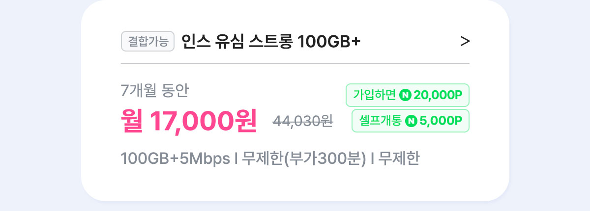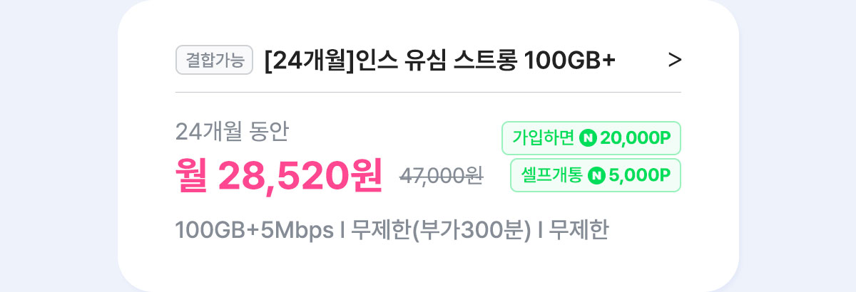 [7개월/24개월] 인스 유심 스트롱 100GB+