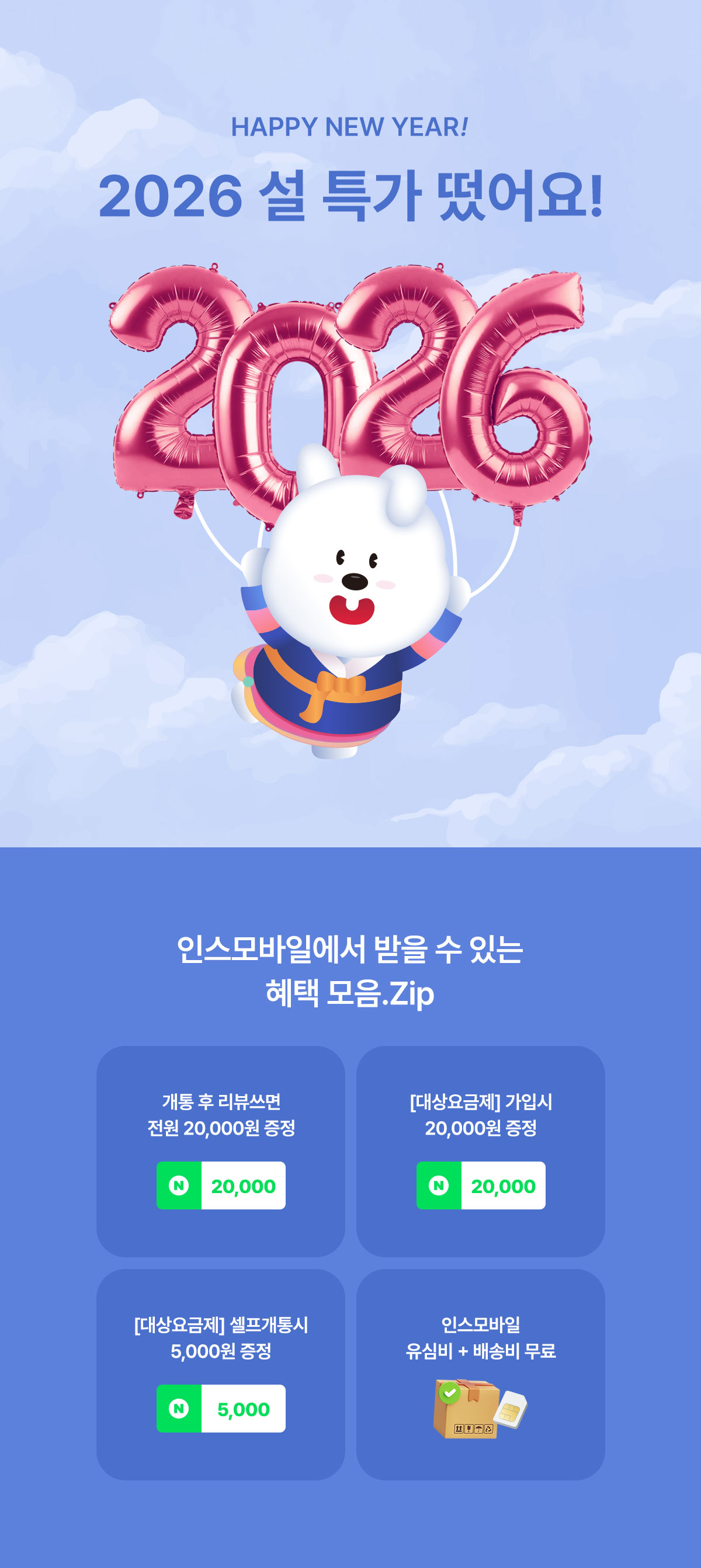 위 요금제로 26년 1월 27일부터 2월 6일까지 개통완료 하신 고객님은 네이버페이 5,000원이 증정되며, 모바일 상품권은 개통하신 번호로 26년 5월 29일(금) 이후 순차 발송됩니다.