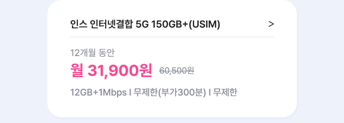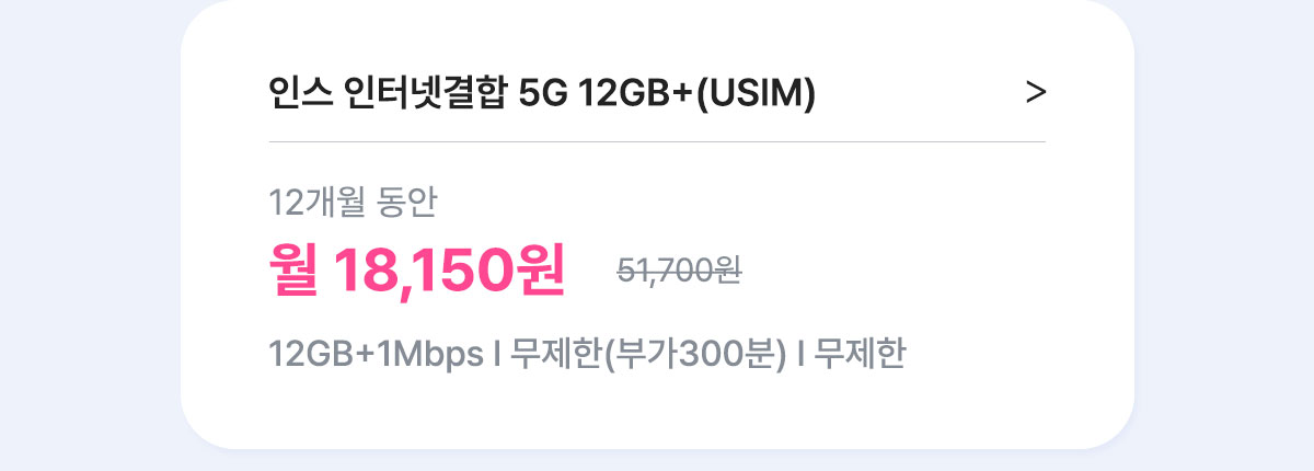 - U+ 결합이 가능한 요금제입니다. (단, [12개월] 인스 유심 올프리 7GB+ 제외)