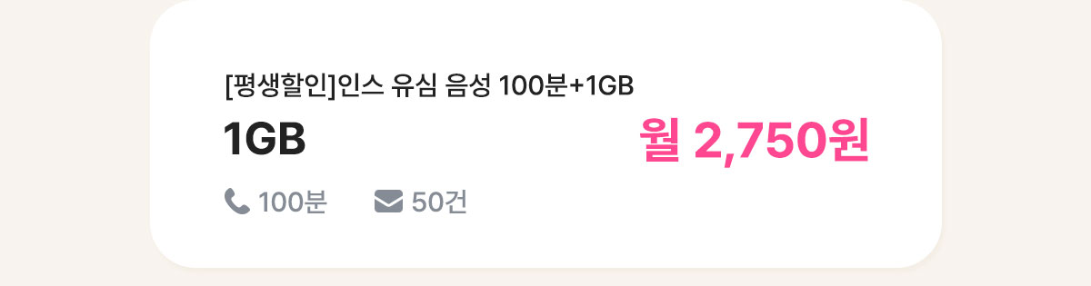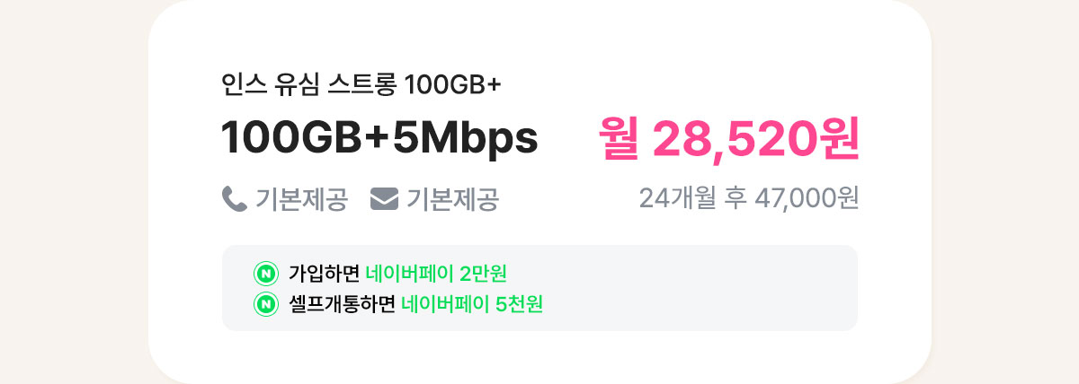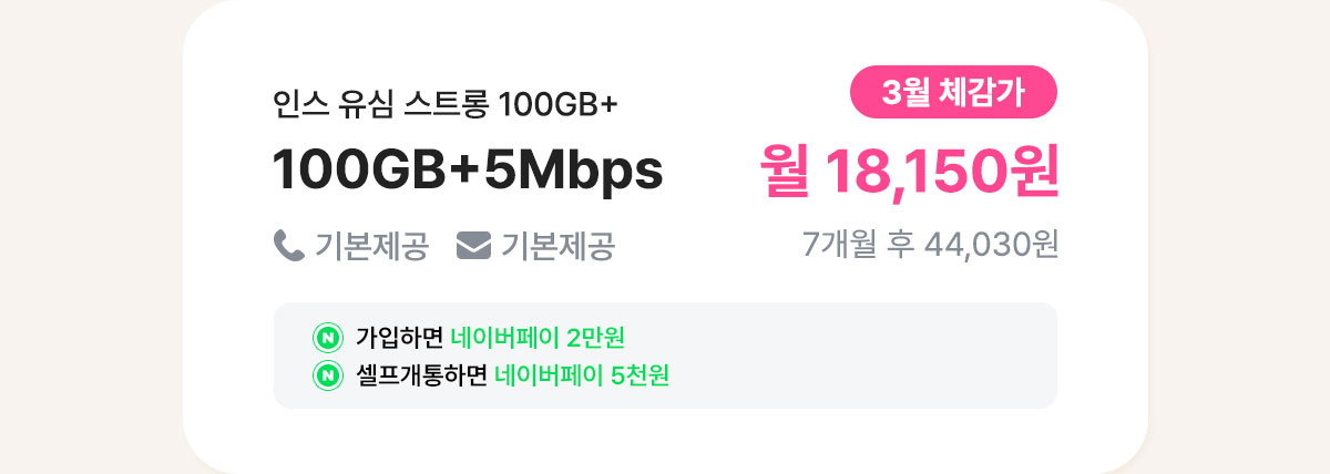 [7개월/24개월] 인스 유심 스트롱 100GB+