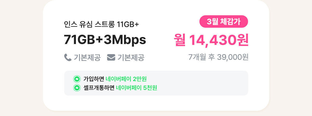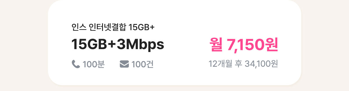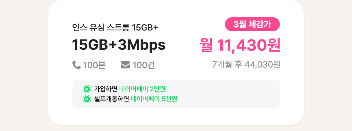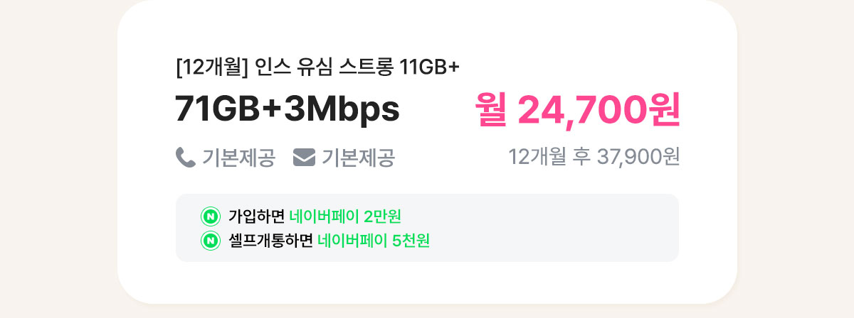 [7개월/12개월/24개월] 인스 유심 스트롱 15GB+