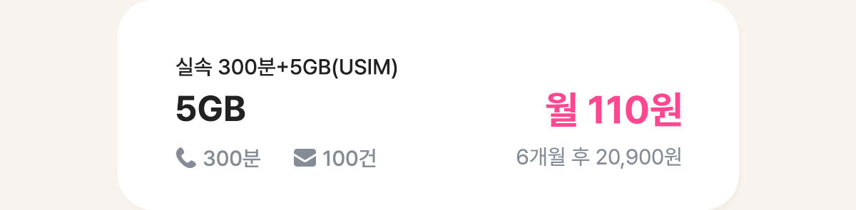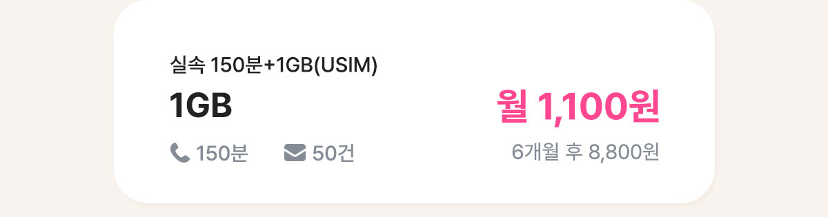 - 유심 수령 후 미개통 시 유심비 8,000원이 청구됩니다.