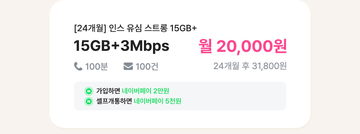 [24개월] 인스 유심 스트롱 15GB+
