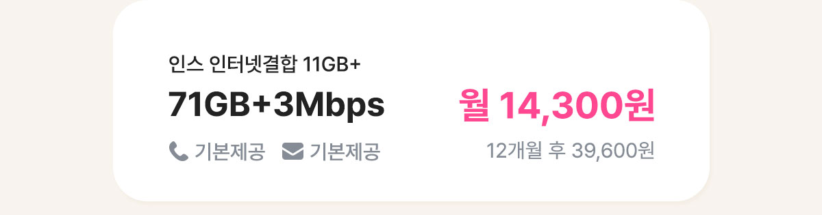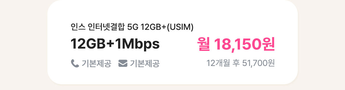 - U+ 결합이 가능한 요금제입니다. (단, [12개월] 인스 유심 올프리 7GB+ 제외)