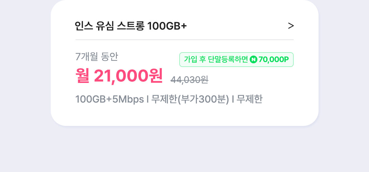 [7개월] 인스 유심 스트롱 100GB+